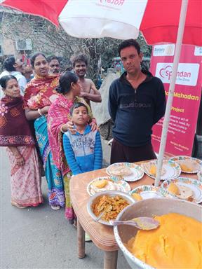 Freshly cooked food aws served to 250 people at Chetla Basti on 10t. . .