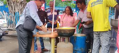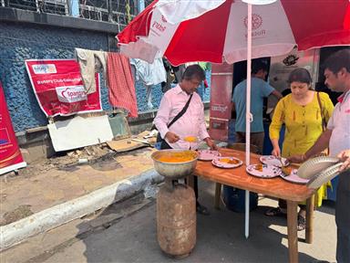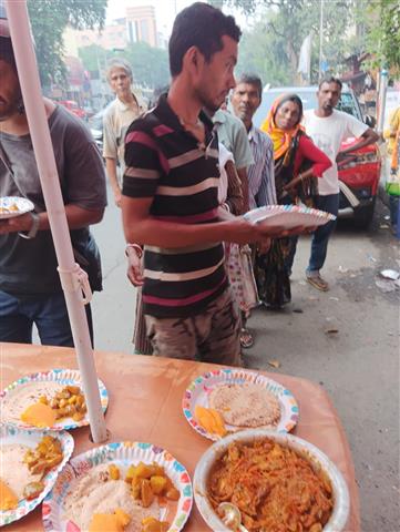 Freshly cooked food was served to 250 people near Chittaranjan Hosp. . .