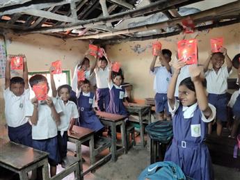 At a school in canning , Chocolate packet and Maggie cup and cloth. . .