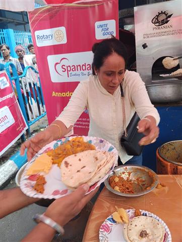 Freshly cooked food was served to 250 people at Chittranjan Hospita. . .