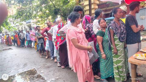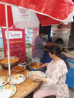Freshly cooked food was served to 250 people at Chetla Basti on 22n. . .