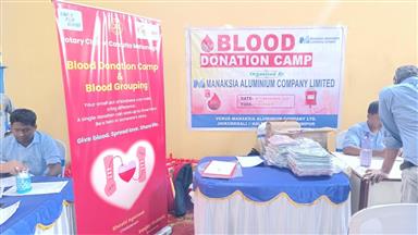 A blood donation and eye check up camp was organized by Rotary Club. . .